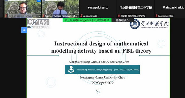 本网讯 2022年9月24日至27日,第20届数学建模与应用教学国际会议(ICTMA20)在德国Würzburg 举行。数学与统计学院2021级研究生蒋湘湘应邀参加线上会议,并作全英文大会报告。来自全世界近200名从事中小学、高等学校的数学建模教学的研究人员和教育工作者参加大会。