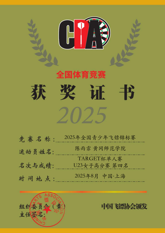 【黄师荣誉】我校学子在2025年全国青少年飞镖锦标赛斩获佳绩